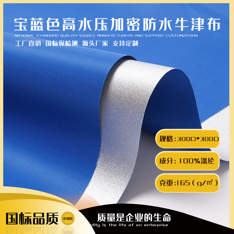 300Dポリエステルオックスフォード布暗号化高水圧コーティング銀オックスフォード布テントバッグ雨幌防水生地