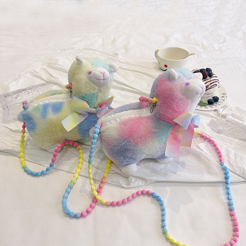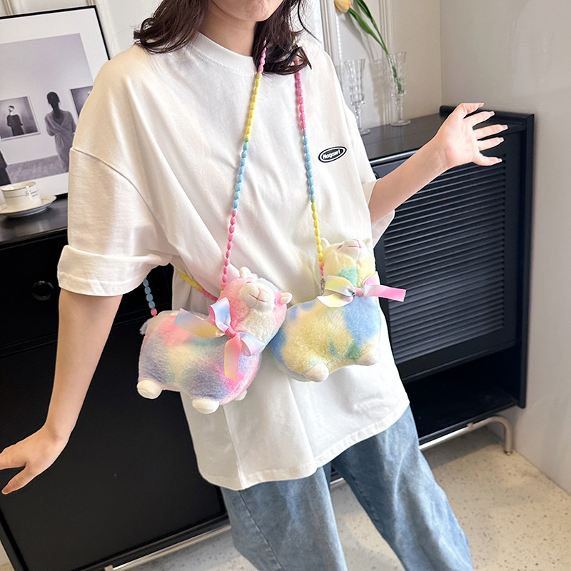 2023新型草泥馬ぬいぐるみバッグ子供人形斜め掛けバッグカラーアルパカ肩掛け斜め掛けバッグ