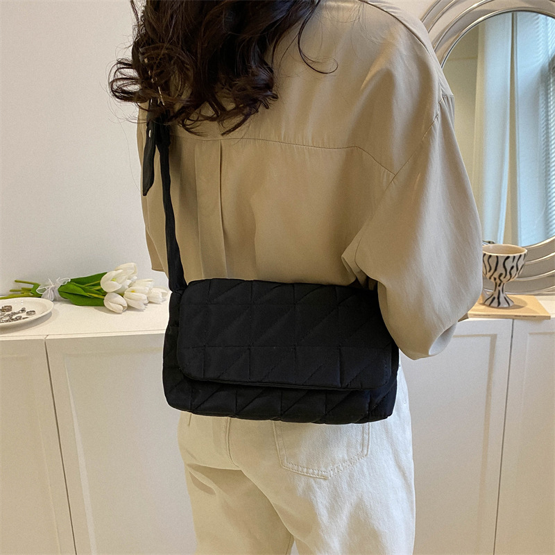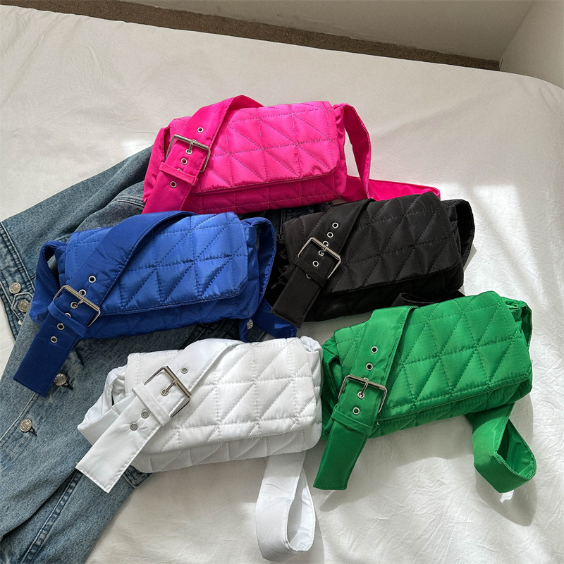2023秋冬新作菱格バッグ街頭ファッション斜め掛けダウンジャケットスポンジ編みソフト面枕バッグ