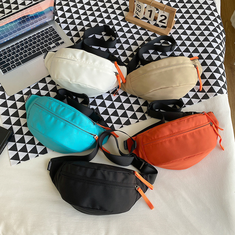 韓国版のシンプルなナイロン布の小さい包みの女性2023の新型の質感のシングル肩の脇の下の包みの胸の包みは斜めに小さい腰の包みを掛けます。