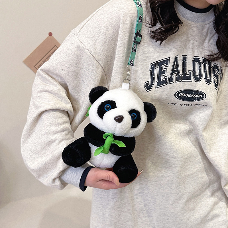 新しいショルダーバッグの女性のショルダーバッグの8インチの子供のプレゼントのパンダのバッグの卸売りのアニメのぬいぐるみのショルダーバッグ