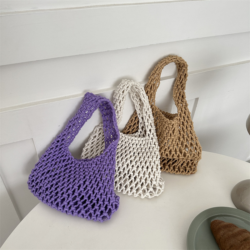 クロスボーダー草編み綿ロープ女性バッグ手作りバッグハンドバッグ2023韓国系新型怠惰風漁網包休