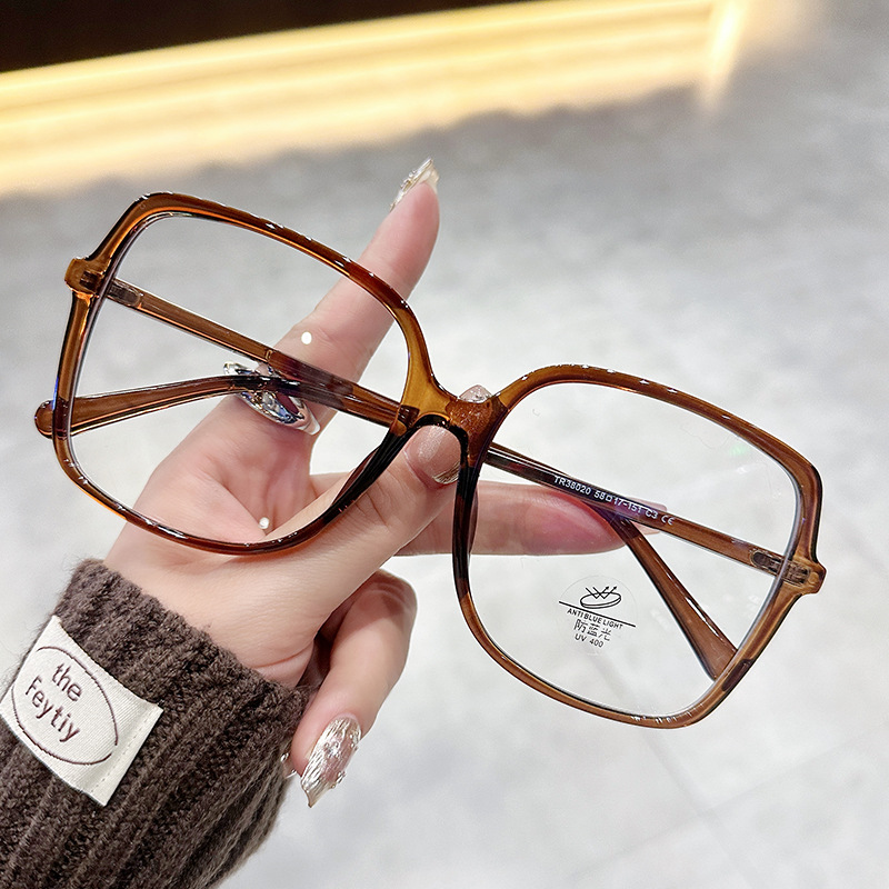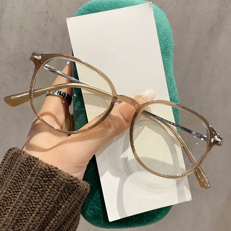 小顔茶色のメガネフレーム女性用美白近視メガネフレームアイフレーム抗青色光フラットミラー 1443