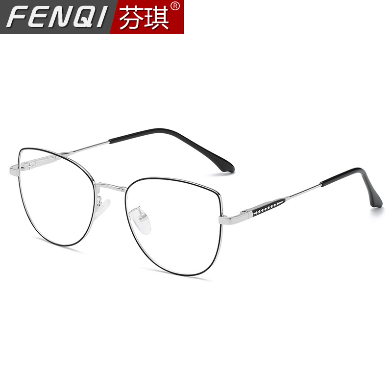 6131金属の半枠の近視のメガネの眉毛の復古防止の青いメガネの枠の近視の女性の潮は度数の鏡のフレームを配合することができます。