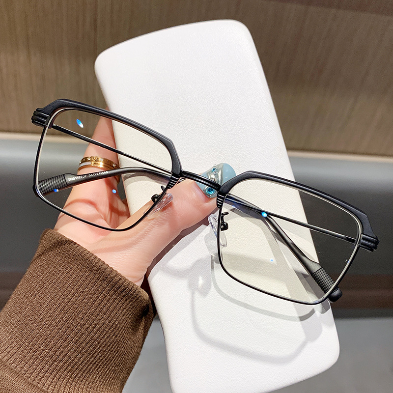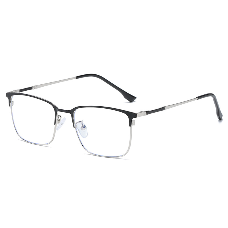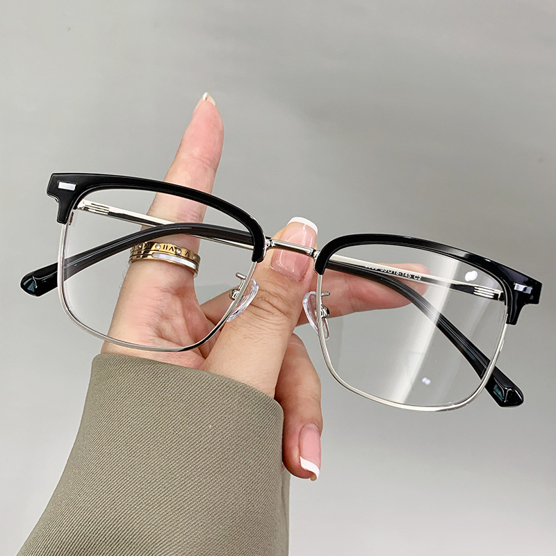 新01177スクエアフレームブルーライトカットメガネ、顔の大きな男性向けブルーライトカット眉メガネフレーム、ハーフフレームメガネ