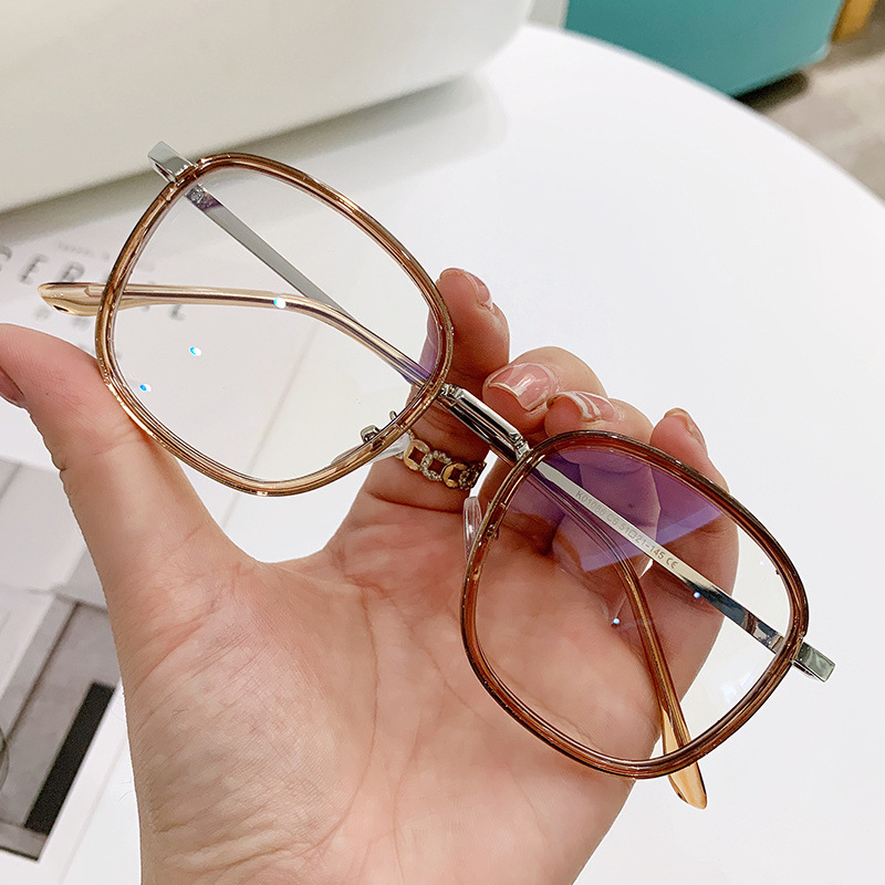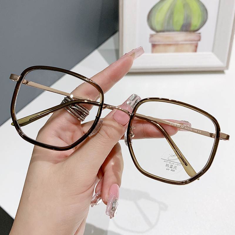 新型ブルーライト防止レトロ角枠フラットミラー男眉フレームメガネレディースビジネスカジュアル近視メガネ