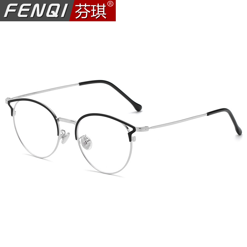 ファッションファッション猫耳メガネフレーム女性金属レトロ防ブルーライト抗放射線フラットミラー男性近視メガネフレーム