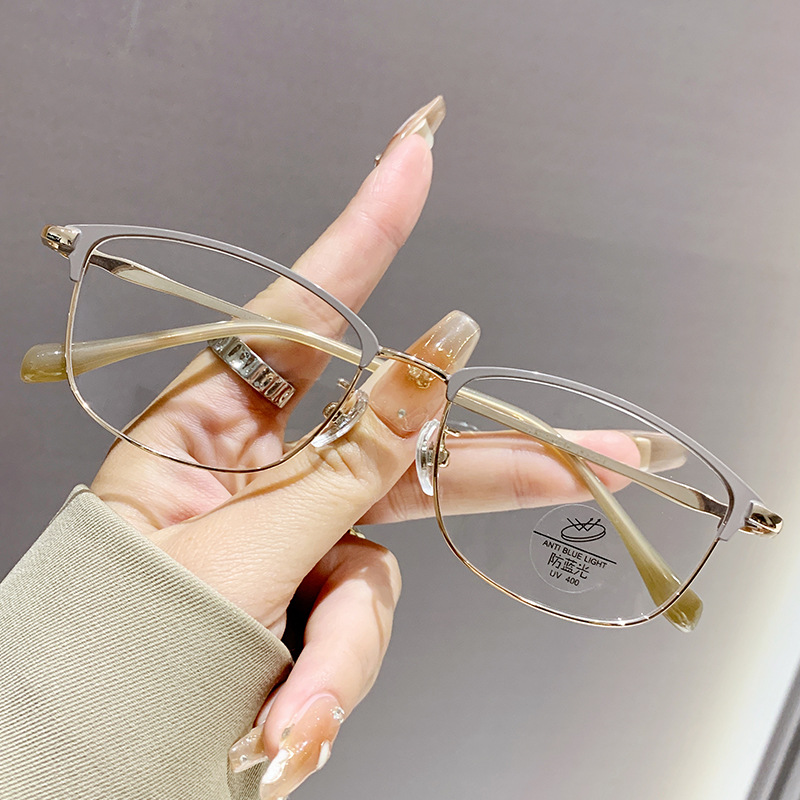 31242 新しいハーフフレームメガネ抗青色光眉毛近視メガネ優しい科学技術男性韓国語版小さなフレームビジネスメガネ