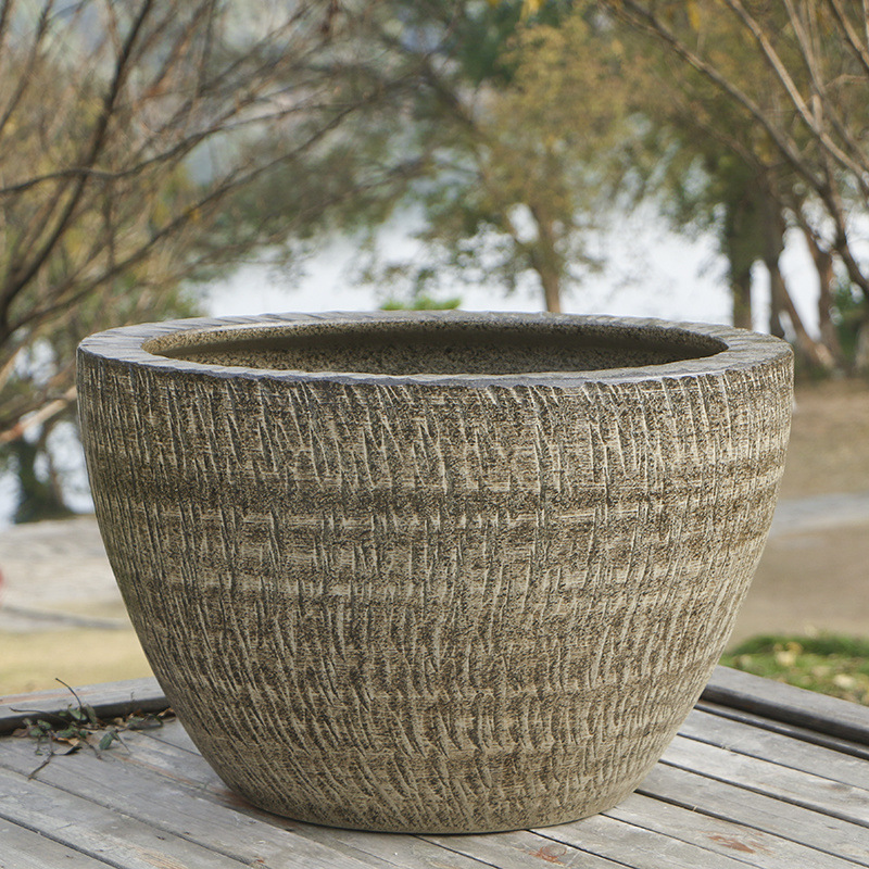 庭の大きいかめの景徳鎮の石紋の彫刻の水筒の金魚のハスの碗のスイレンの鉢のカメのかめの甲魚