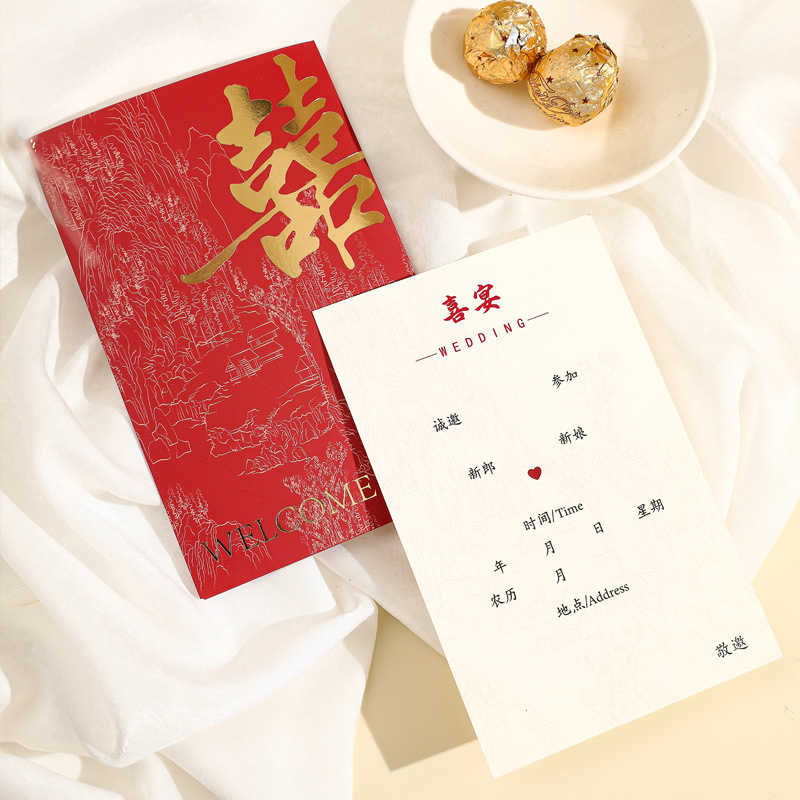 結婚招待状結婚式招待状2024新型中国式結婚披露宴招待状シンプルで高級感のある結婚祝いの印刷