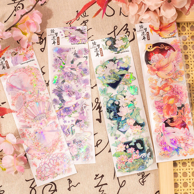 美しい一日霊籠夢蝶シリーズ復古花鳥手帳打底diyレーザーpetシール6種類