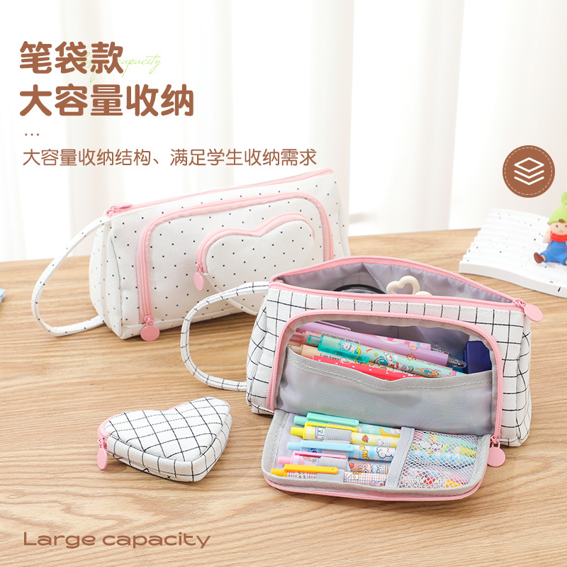 手提げ窓大容量筆袋女性格子韓国版シンプル学生鉛筆袋多機能キャンバス文房具袋