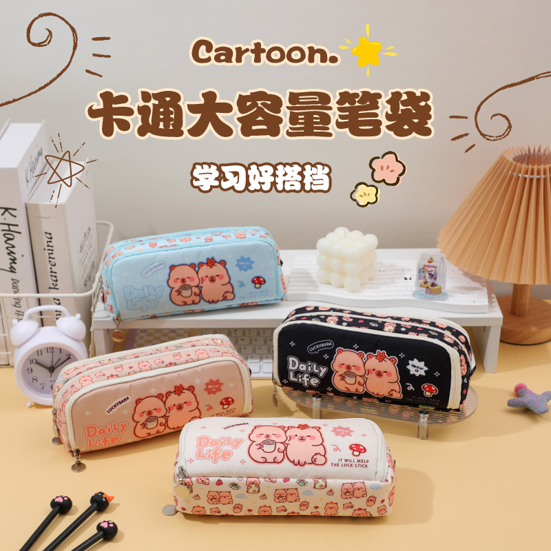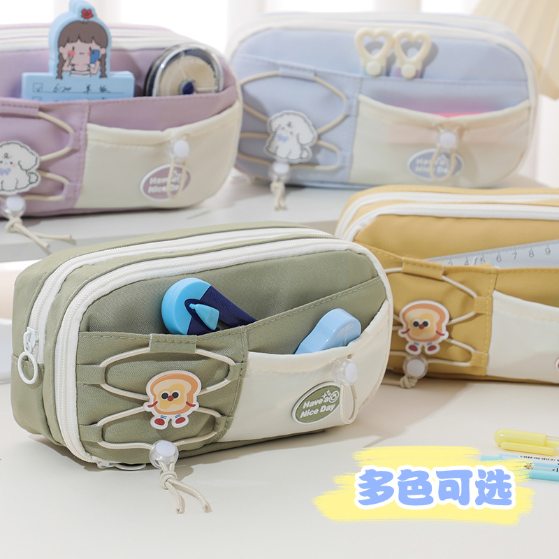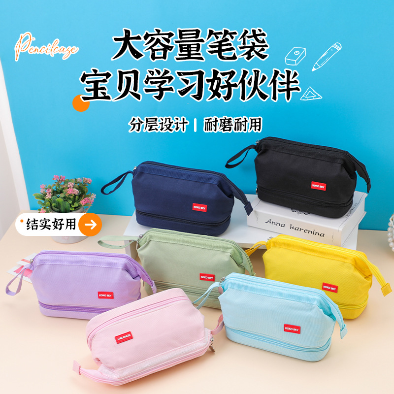 韓国版高颜値筆袋大容量中学生文房具箱クロスボーダー二重帆布シンプル純色文房具袋