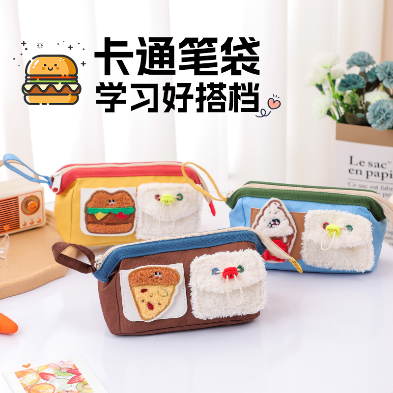 かわいい熊のハンバーグの筆袋の大容量の女性の日系ins風の高い顔の値の個性の刺繍の漫画の学生の筆箱