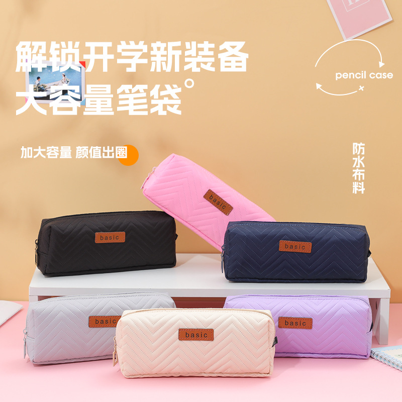 メーカー現物複合圧紋大容量筆袋学生中学生日系シンプル純色文房具袋卸売り