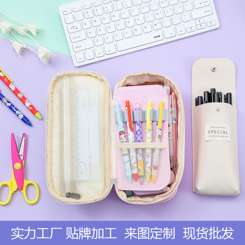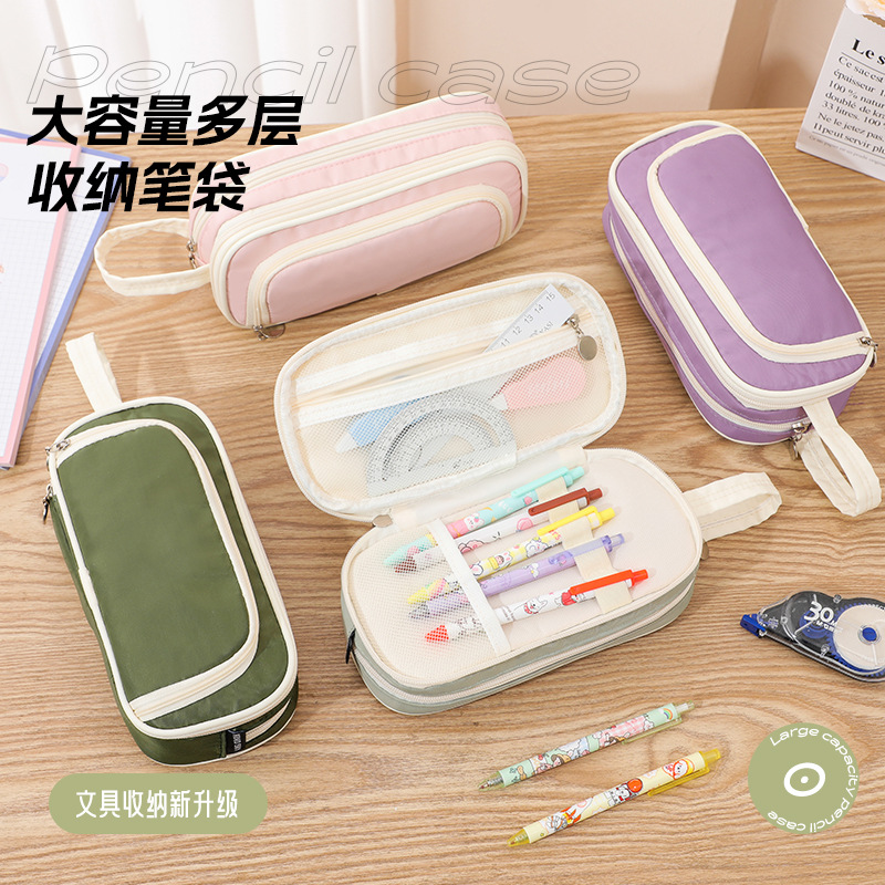 新型二重韓国版大容量筆袋女子学生日系ins高颜値多機能複合布筆箱卸売り
