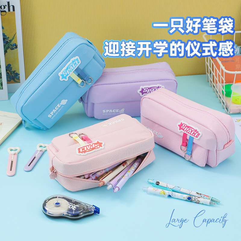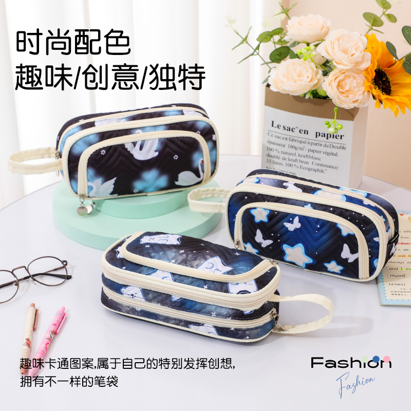 新型二重韓国版大容量筆袋女子学生日系高颜値ins風星海ローミングオックスフォード布筆箱