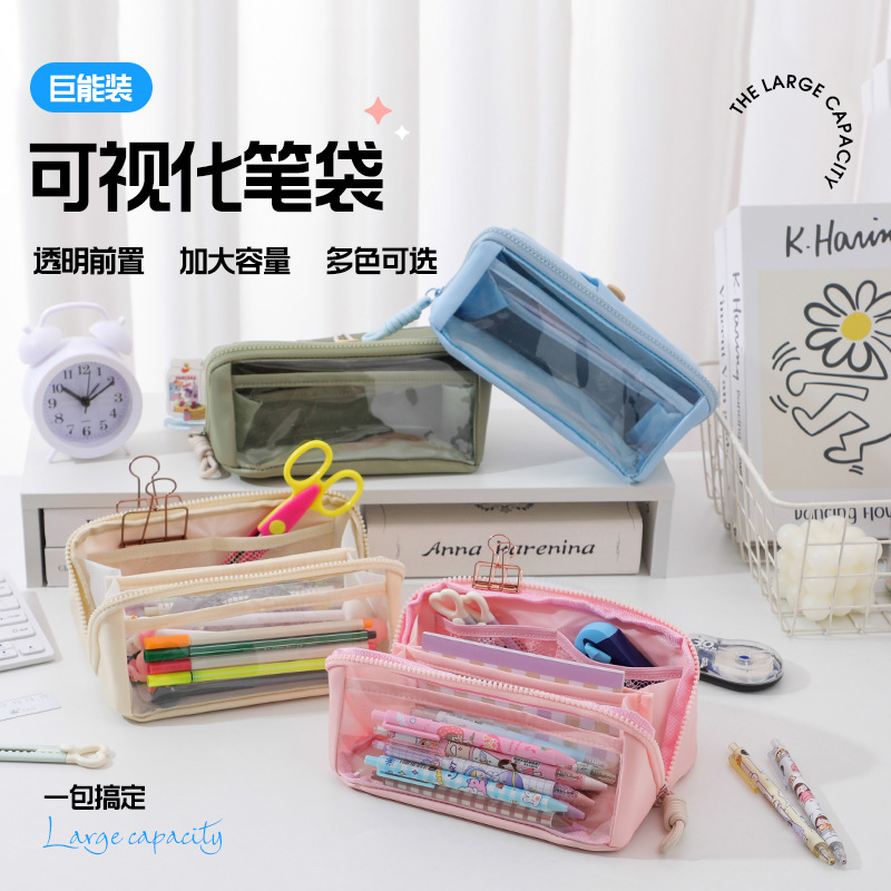 クロスボーダー窓二重大容量筆袋高颜値ins風中学校小学生シンプル複合布文房具袋