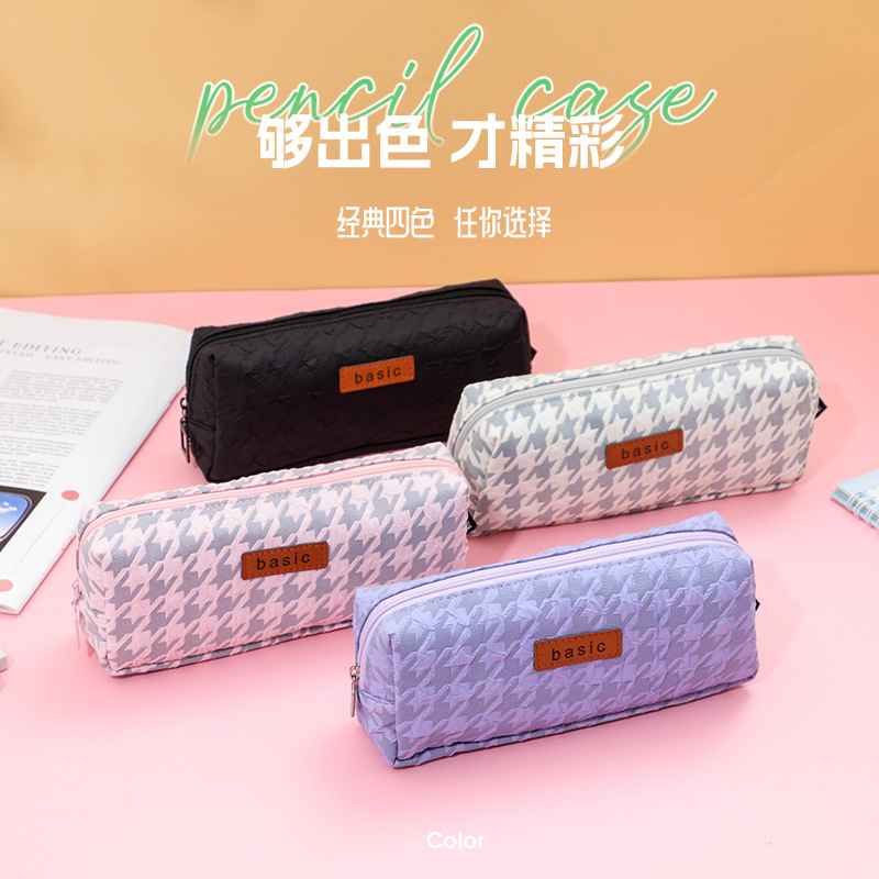 クロスボーダー単層千鳥格筆袋大容量日系ins風学生新型韓国版シンプル純色文房具袋