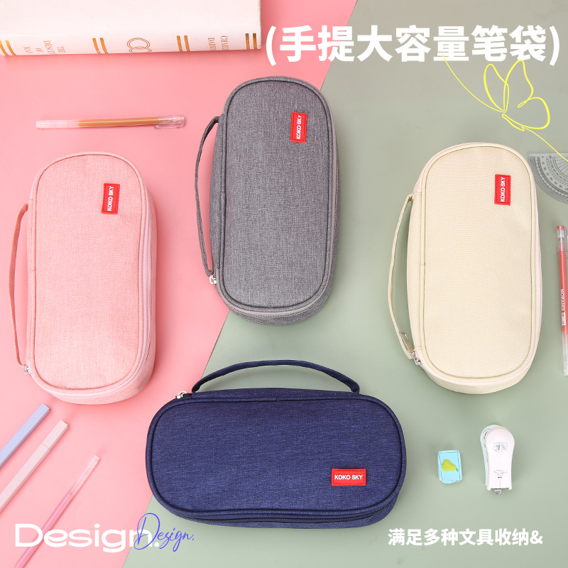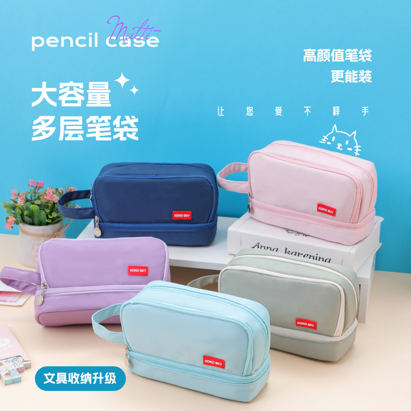 新しい韓国版純色二重大容量ペンバッグオックスフォード布多機能シンプル学生文房具袋卸売り