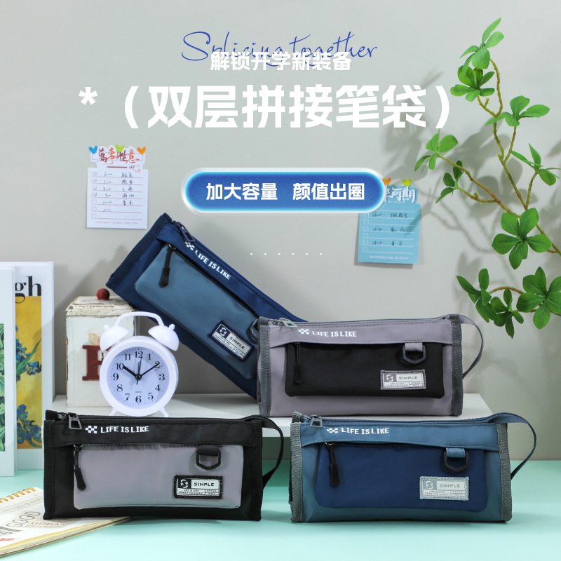 現物二重手提げ防水複合布大容量筆袋男の子学生の新型韓国版鉛筆袋