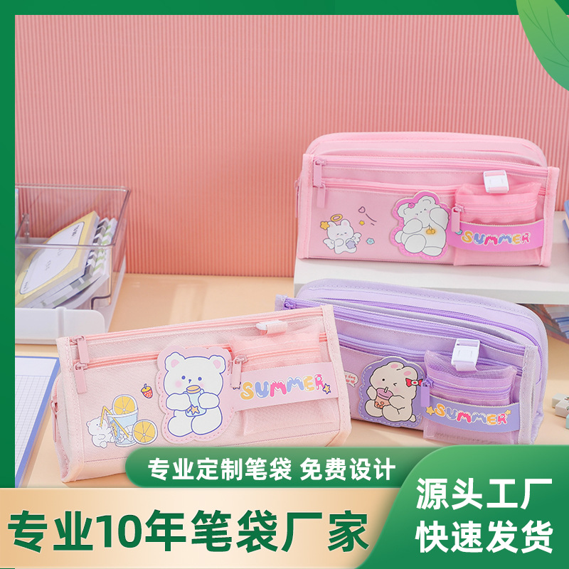 新しいミルク熊淘淘かわいい家具袋の女の子のアイデア二重防水複合布大容量筆袋卸売り