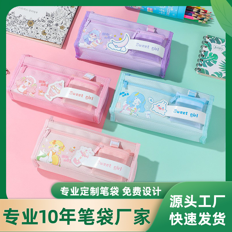 筆袋大容量女2022新型多機能鉛筆ケースかわいい文房具袋学生ネット糸筆袋卸売り