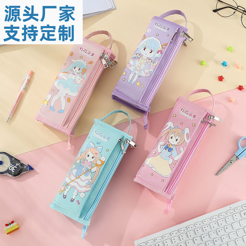 現物二重筆袋女ins風日系大容量文房具箱卸売りかわいいアニメオックスフォード布鉛筆袋