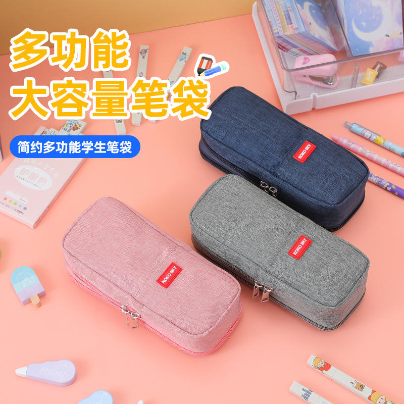メーカーの二重ファスナーのシンプルな筆袋韓国版オックスフォード布文房具箱卸売り大容量学生鉛筆袋