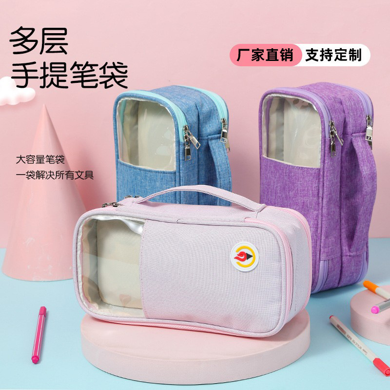 メーカー多層手提げ双ファスナー筆袋オックスフォード布中学生多機能文房具箱印logo筆箱