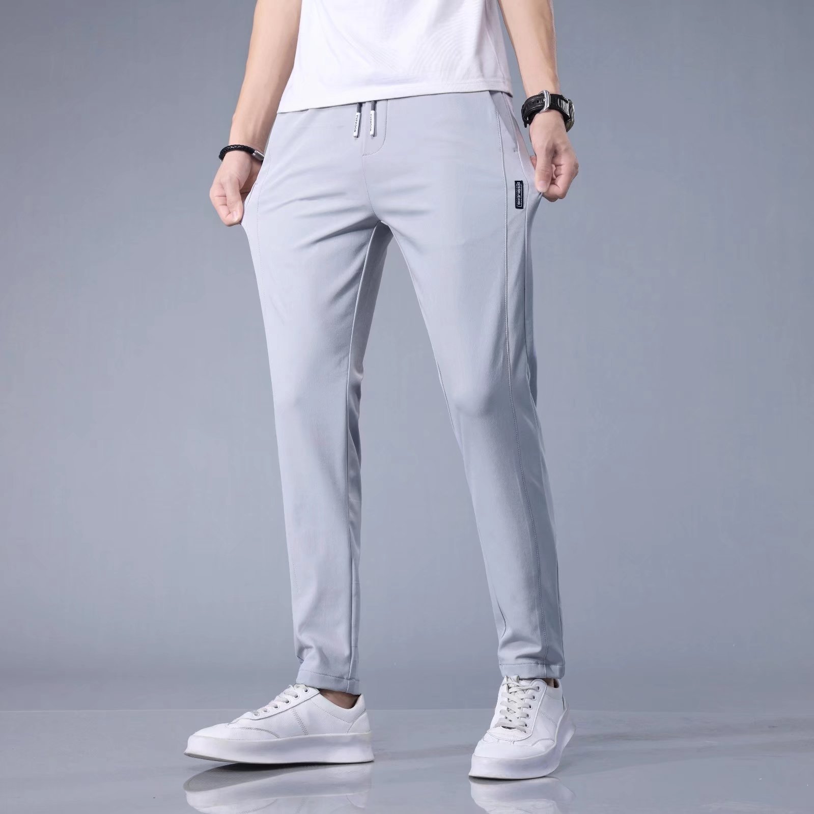 夏の氷の糸のカジュアルなズボンの男性の薄い金の2022年の夏の新型の修身のまっすぐな筒の松の百合の男性のズボン