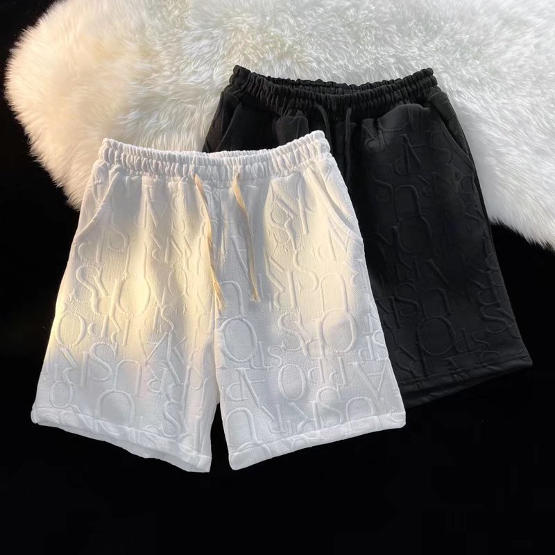 2023年夏新作半袖五分丈パンツセット ワッフル生地 トレンドブランド ピュアカジュアルスーツ メンズファッションセット