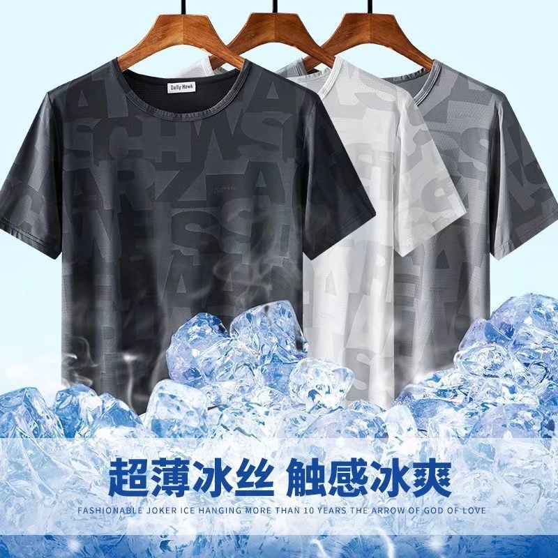 アイス半袖tシャツメンズスポーツ速乾ボディシャツ夏の通気性の大きいサイズの夏服はゆったりしています。