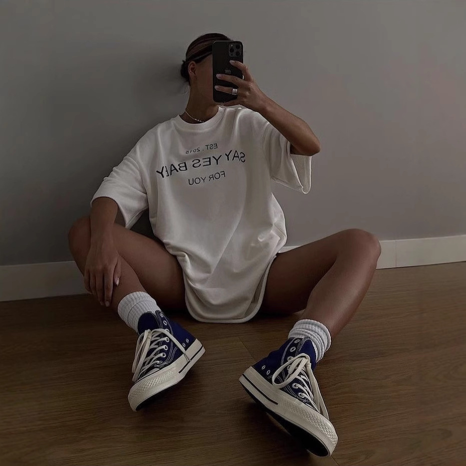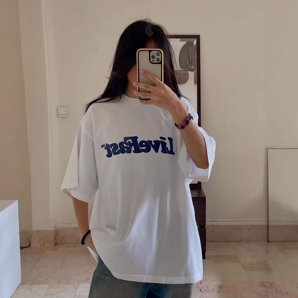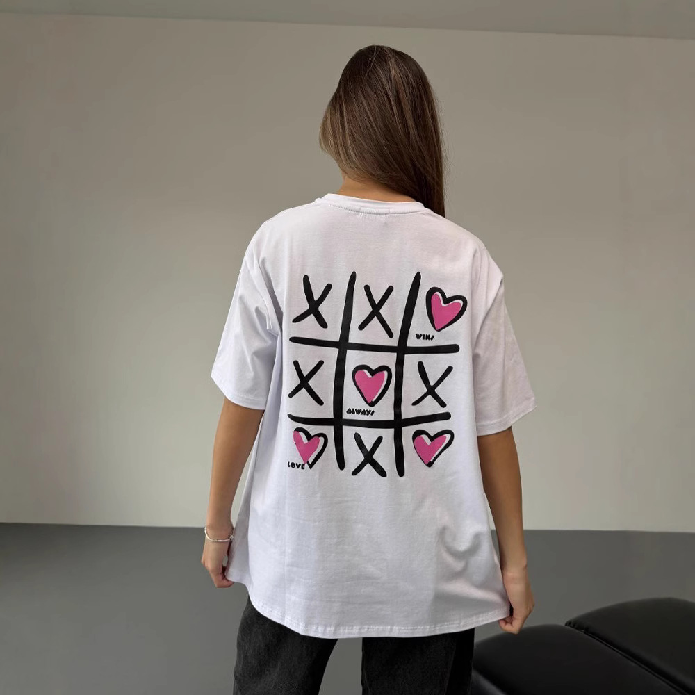 速売通人気2025夏の新型背中愛プリントカジュアルなゆるい丸首半袖tシャツ女性