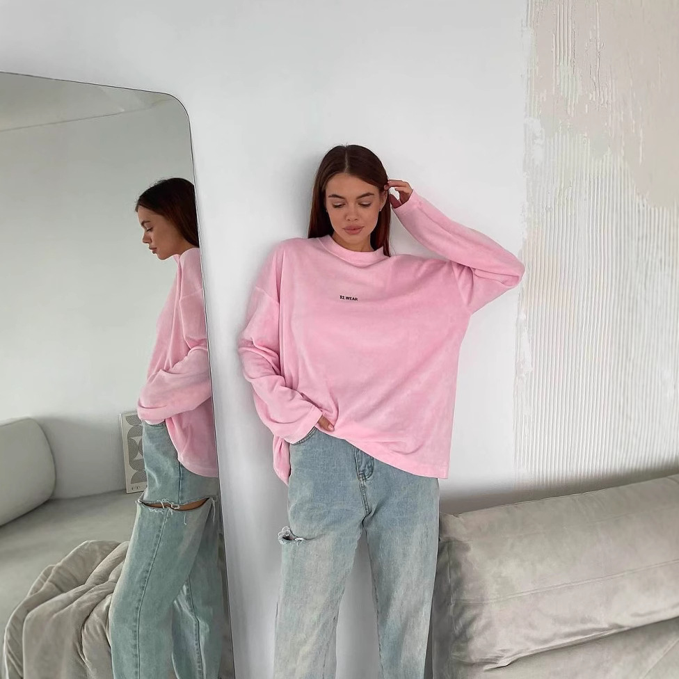 春と秋の新型レディースファッションプリントのアルファベットデザインのスウェットがゆったりしています。