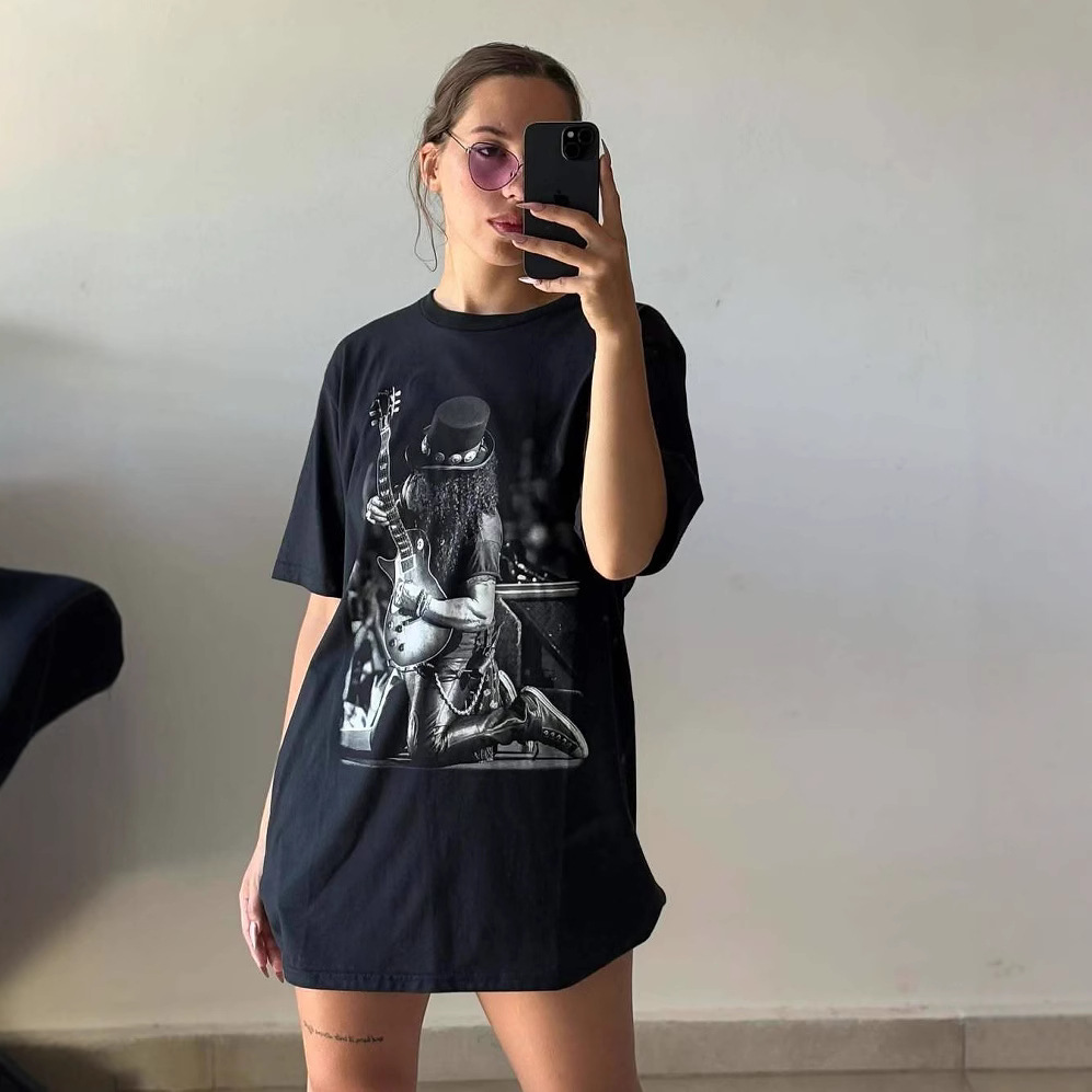 アメリカのレトロな重いポンドの人物のプリントのoversizeカジュアルな上着2025春夏の新型の丸首の半袖のtシャツ