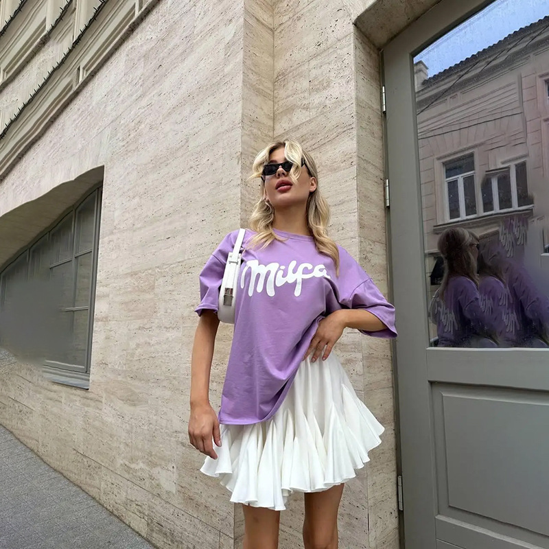 純綿の中の半袖tシャツの女性の夏の新型欧米の怠惰な風がゆったりしています。