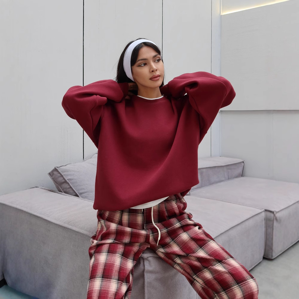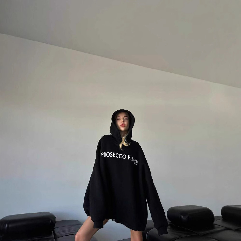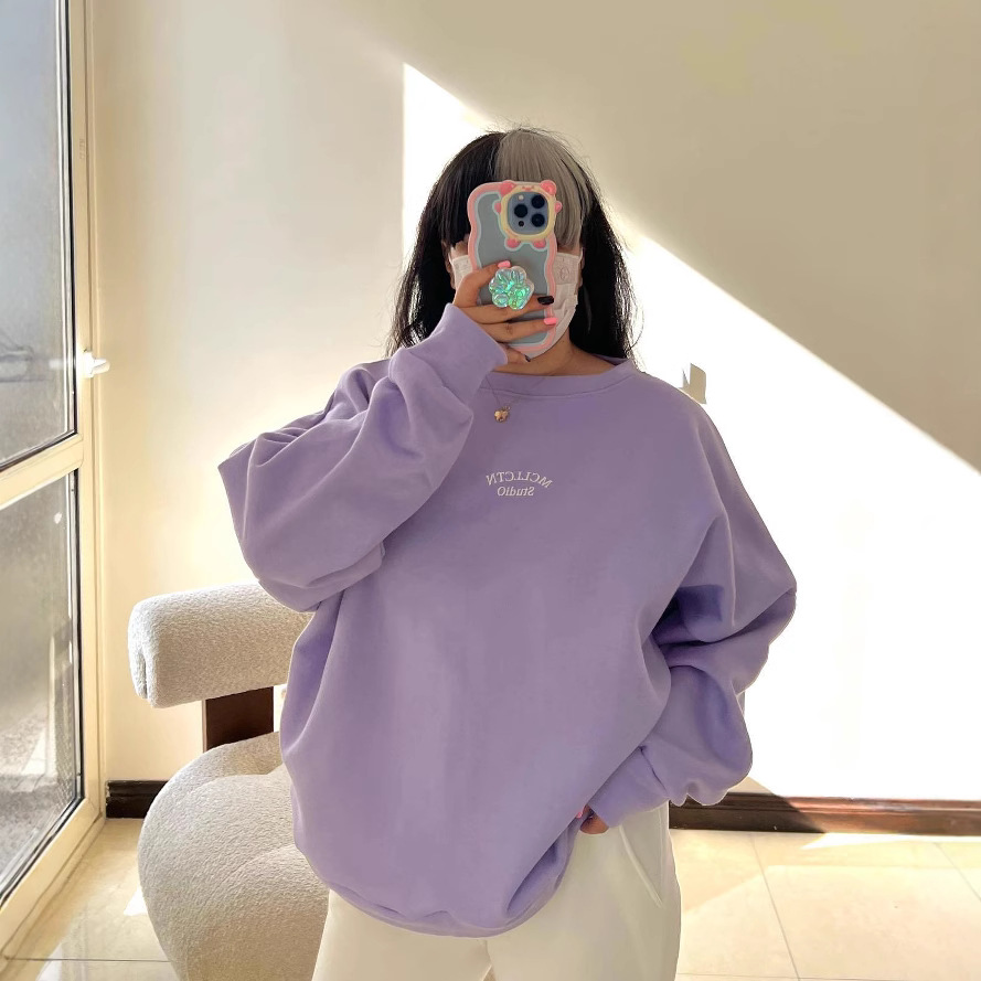 2024秋冬新作シンプルアルファベットプリント長袖上着ins風ゆったり潮牌丸襟正肩衛衣女
