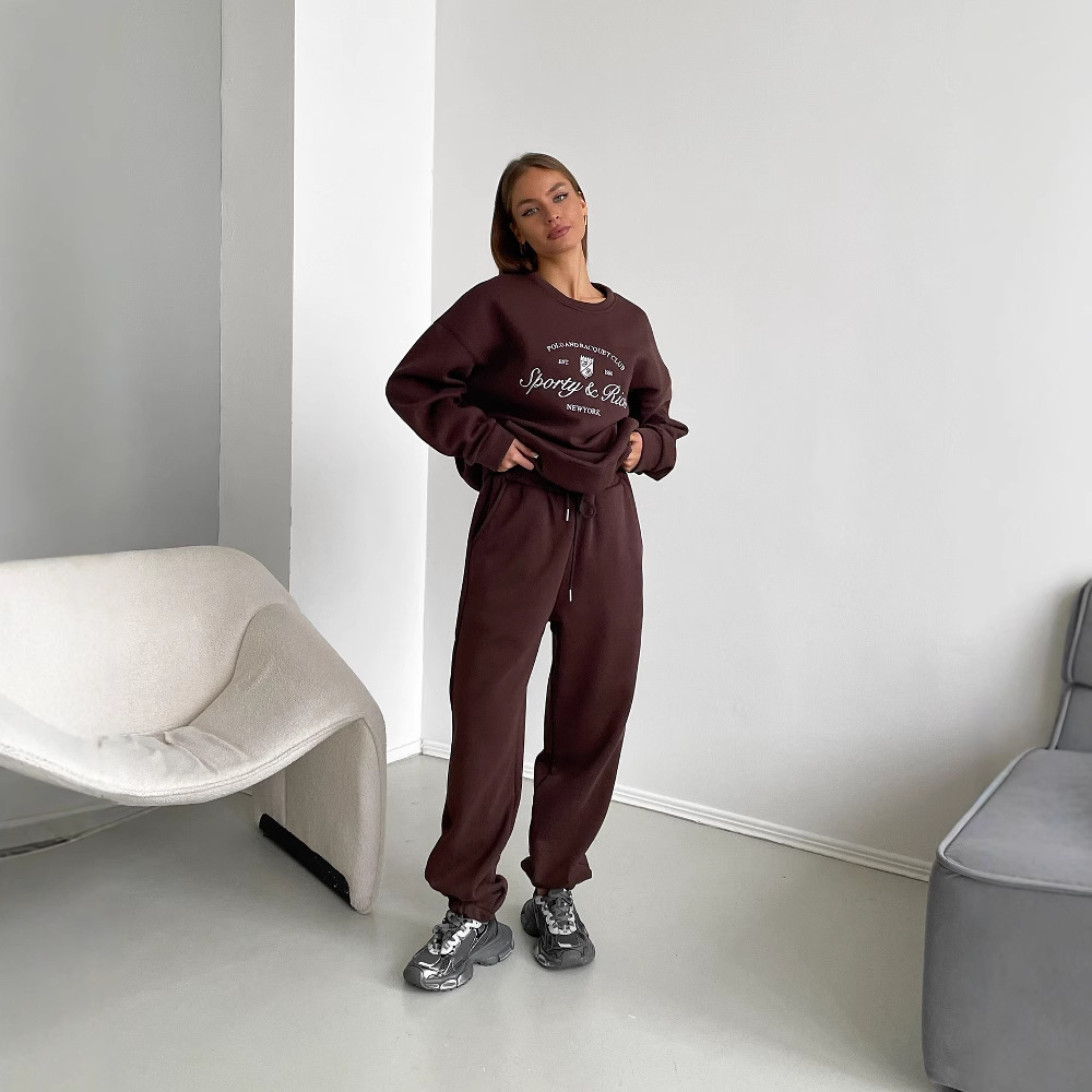 2024秋冬の新型丸首のアルファベットのプリントの長袖のガードルのゆったりした束の足の衛のズボンの女性の高級感の2つのセット
