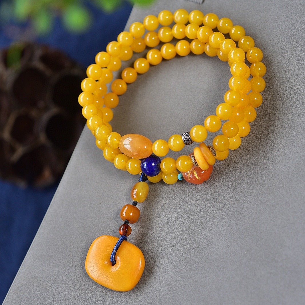 11mmチキンバターイエロー蜜蝋、天然古蜜蝋、シングルサークルブレスレット、濃厚蜜蝋、チキンバターイエロー古蜜蝋