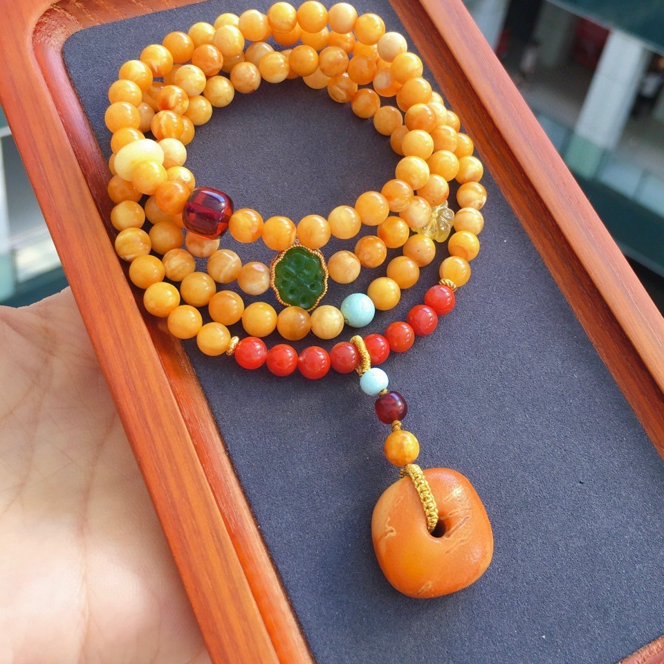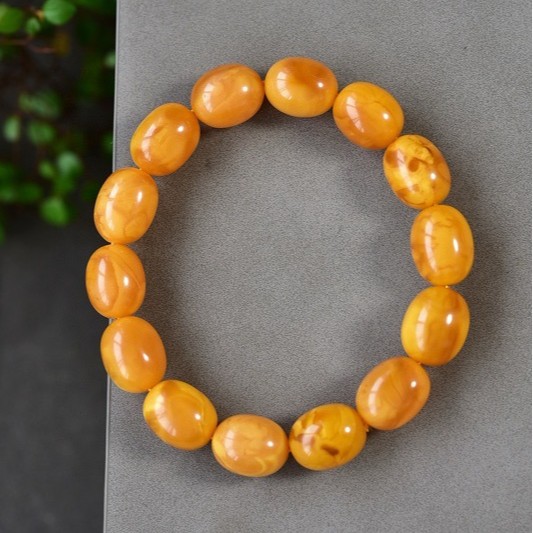 天然ロシアのミツロウ三輪のブレスレットは蜜鶏油黄包油潤とミツロウの平安ボタンのサイズが5ミリです。
