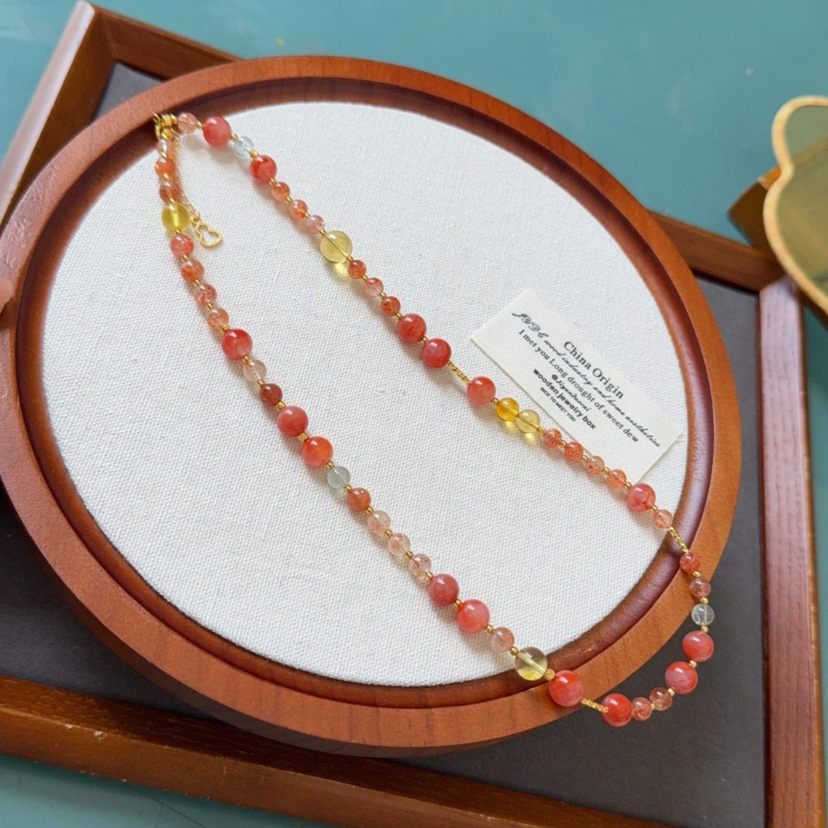 ナチュラルサンストーンとサザンレッド鎖骨チェーンネックレス アルーシャネックレス ゴールデンサン ゴールデンストロベリー マルチトレジャー
