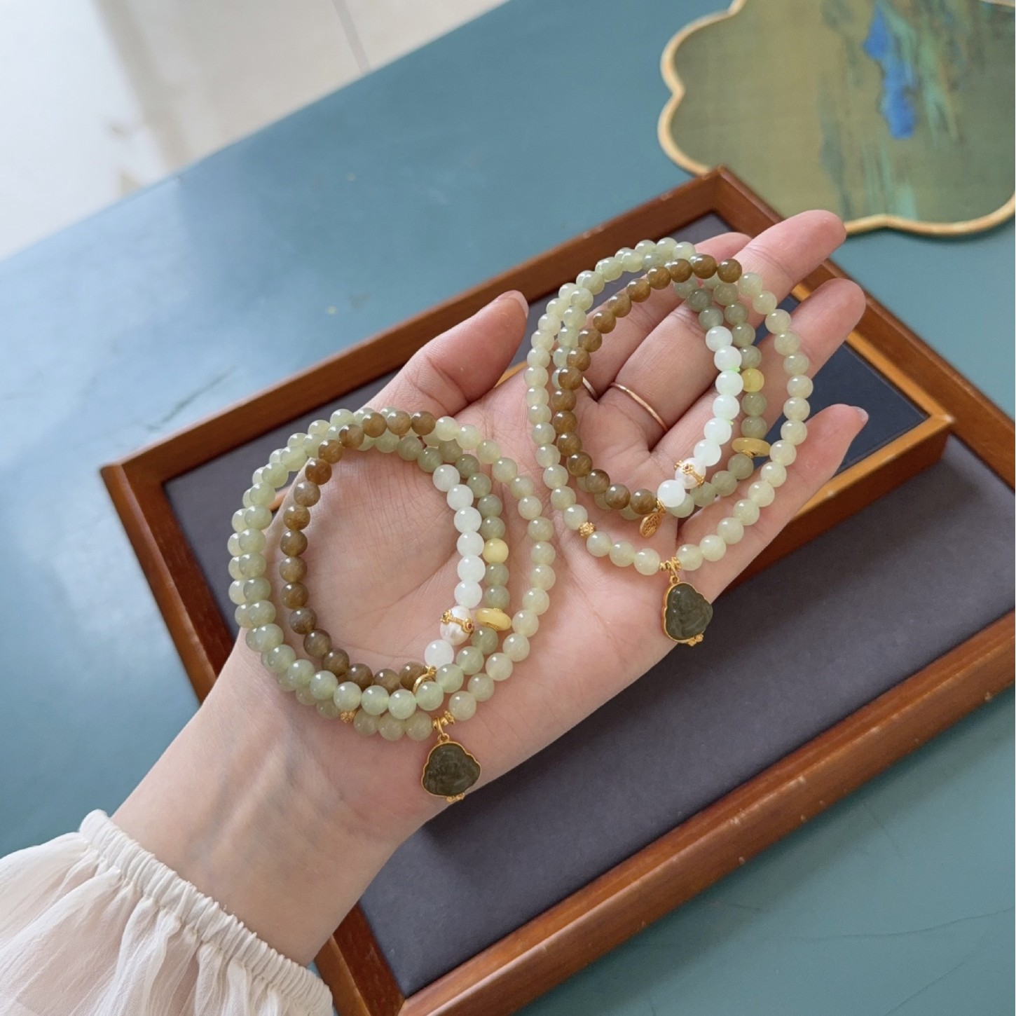 ホータン翡翠白翡翠二重丸ブレスレットホータン白翡翠の質は滑らかで蜜蝋の二重丸ブレスレットホータン翡翠卸売
