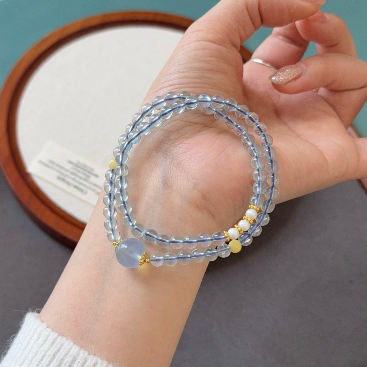 ナチュラルグレームーンストーンダブルサークルブレスレット女性用スーパーブルーライトストーンブロンドストロベリークリスタルナフダブルサークルブレスレット
