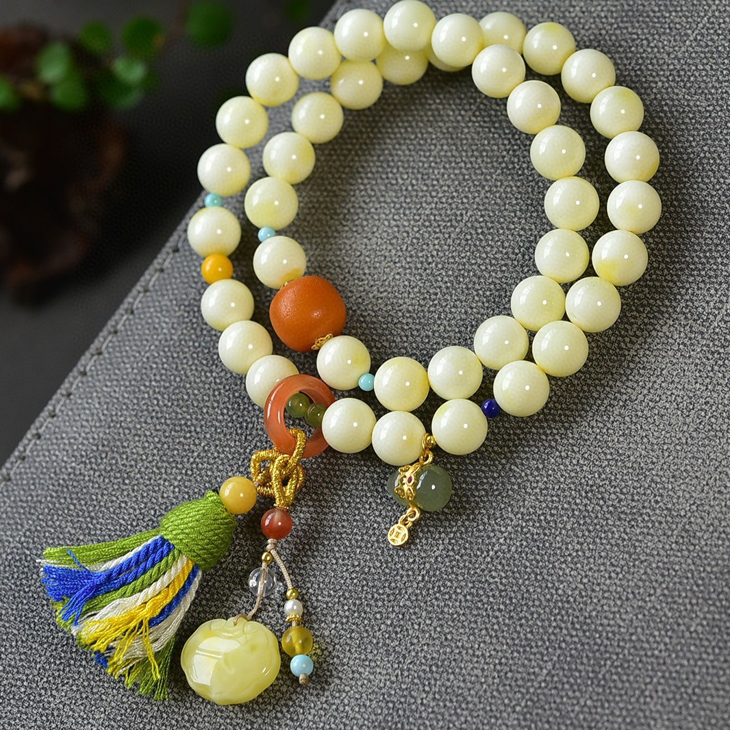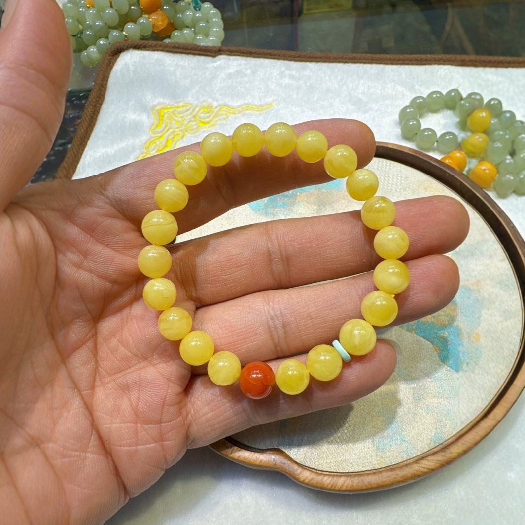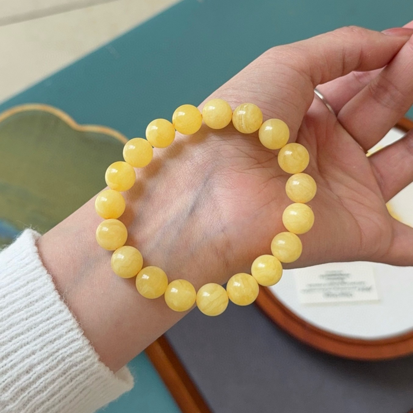 天然鉱石ロシア産蜜蝋ブレスレット、ビーズ付き、シンプル、無焼色蜜蝋、サイズ6~12mm