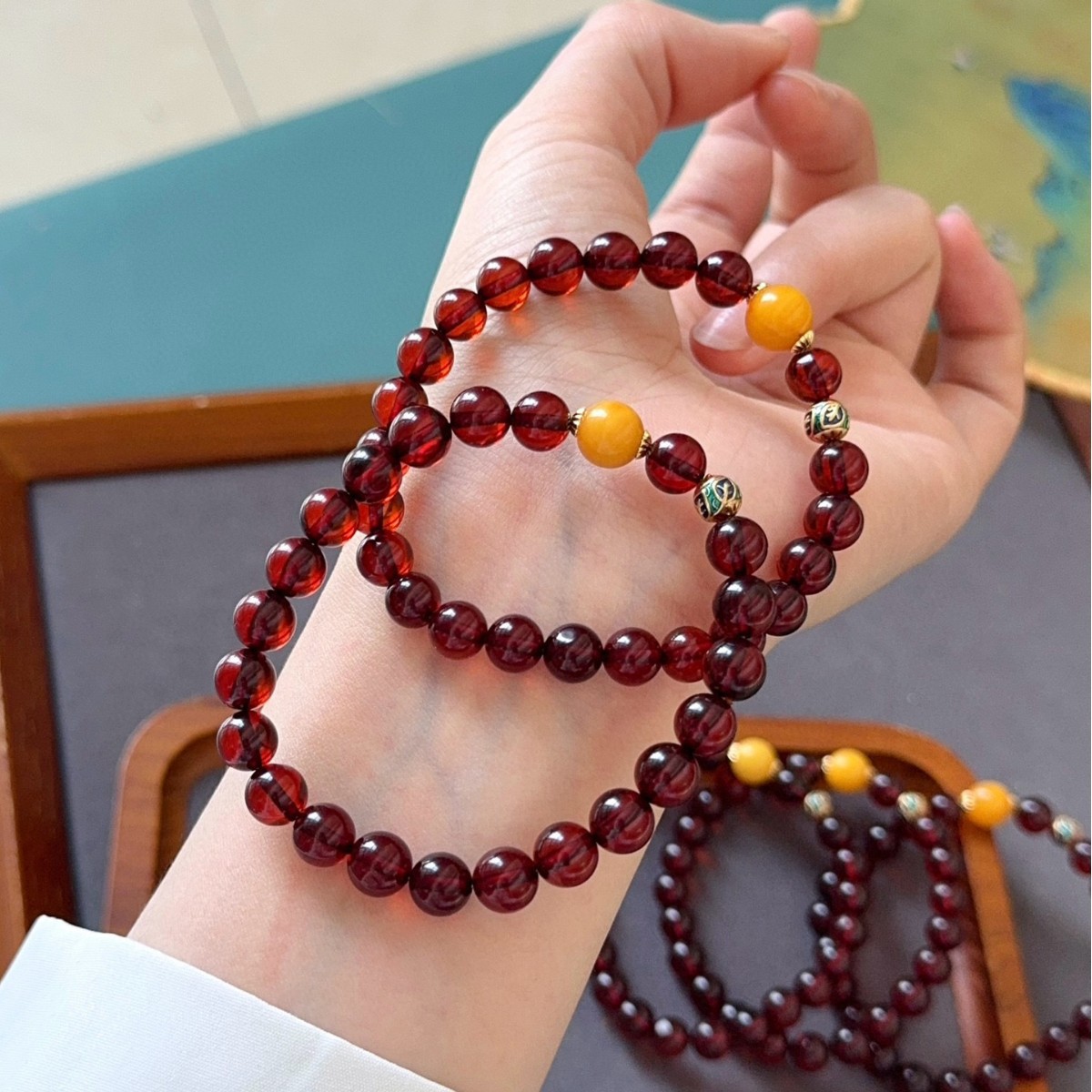 天然ブラッドアンバー シングルサークルブレスレット 赤い色と古い蜜蝋ビーズ バルト海ブラッドアンバー卸売 7mm
