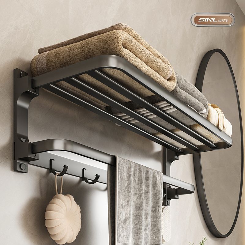 銃の灰色のタオルの棚の宇宙アルミニウムのトイレのティッシュの棚のトイレは折り畳みができます。
