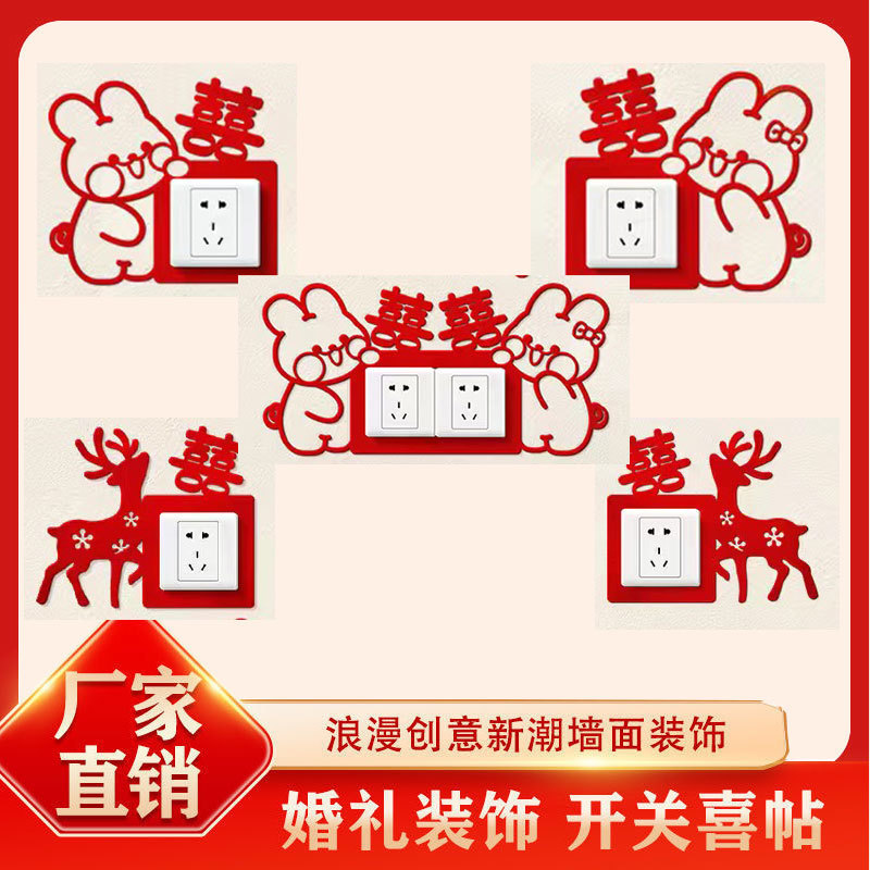 結婚式の創造的なハッピーワードスイッチステッカー結婚式の部屋のレイアウト新郎新婦の寝室のリビングルームのステッカーリビングルームのソケットの装飾