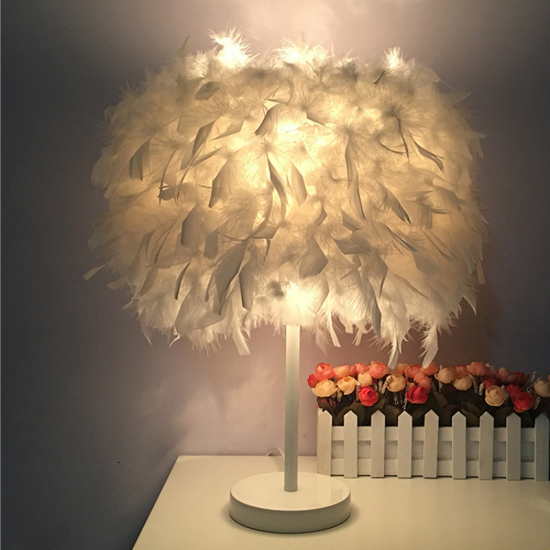 欧式时尚羽毛台灯结婚庆装饰白色卧室床头创意客厅小灯饰