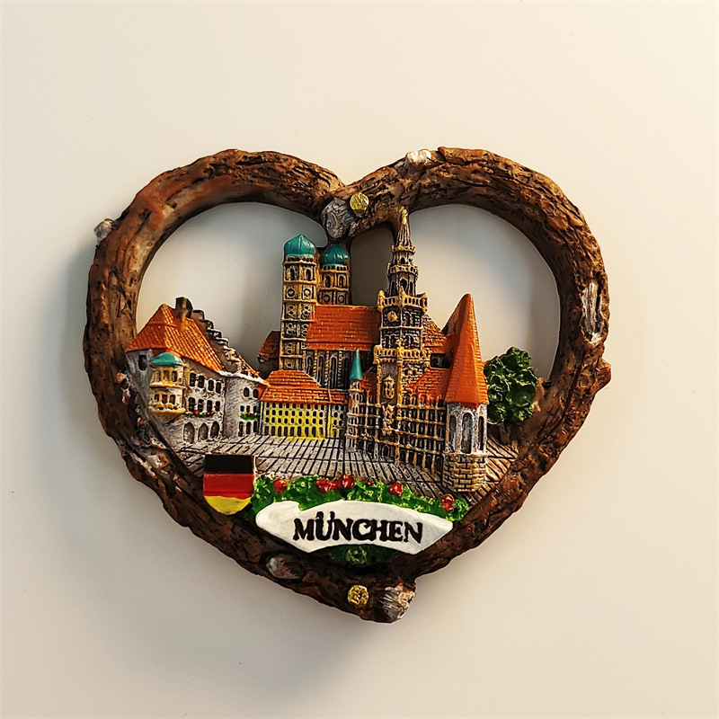 ミュンヘン立体ハート型建築観光記念手描き装飾磁気冷蔵庫マグネットコレクション